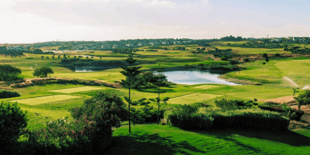 Le parcours lui-même reflète une conception moderne et audacieuse. Les obstacles stratégiques et les perspectives variées stimulent l’esprit des joueurs confirmés, tandis que les zones naturelles et les dix lacs artificiels s’intègrent avec harmonie dans le paysage. Les fairways serpentent le long de la forêt de Bouskoura, enveloppés par une végétation luxuriante qui confère au terrain une atmosphère paisible et immersive. Chaque trou devient une invitation à la concentration et à l’émerveillement, offrant une expérience où la technicité se marie à la beauté du décor.